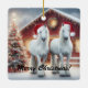 Schöne Weiße Pferde mit einer Weihnachtsmannmütze Keramikornament