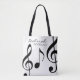 Eine schöne weiße Tasche-Tasche mit schwarzen und grafischen Noten, personalisiert mit Ihrem Namen