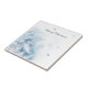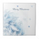Ein wunderschönes Muster von Winterfarnfrost auf einem Fenster, begleitet von Schneeflocken in Blau und Weiß.
