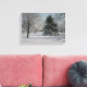 Schöne Winterszene mit rotem Hühnerhaus im Hintergrund, um ihm die Touch der Farbe an einem schneebedeckten Tag zu geben.