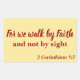 Ein großartiger Aufkleber Design mit einer Christlichen Nachricht, dieser Artikel lautet "Für uns gehen durch den Glauben und nicht sehen" 2 Korinther 5:7 in rotem Schriftart auf einem goldenen Hintergrund geschrieben. Bestelle noch heute!