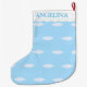 Schöne Wolken auf hellblauem Hintergrund personalisierter Strumpf. Unter den Leuten sind Engel! Frohe Weihnachten!