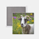Dieser Magnet weist eine gut aussehende Ziege in einem Feld von Wildblumen auf.