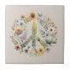 Schöner 70er Retro Peace Signature Keramik Fliesen. Diese Kachel zeichnet sich durch ein atemberaubendes Retro-Blumendesign aus, das ein großes, kühnes Friedenszeichen in der Mitte umgibt. Die lebhaften, Vintag inspirierten Blume sind in einer harmonischen Farbenmischung gehalten, die ein Gefühl von Nostalgie und Ruhe weckt. Ideal für alle, die Stil und eine schöne Mischung aus subtiler Ästhetik und positivem Ambiente zu schätzen wissen.