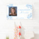 Elegantes und feminines Abschluss-Banner mit glitzerndem blauen Glitzer und weinfarbigen dekorativen Ecken in Weiß. Fügen Sie Ihre Noten Foto und Namen zu personalisieren.