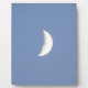 Diese phantastische Gedenktafel zeigt ein schönes Foto eines halbmondförmigen Mondes, das bei Tageslicht aufgenommen wurde. Der wunderschöne blaue Himmel verblasst in den Hintergrund, während der atemberaubende, weiße Mond die Aufmerksamkeit auf sich zieht, während er auf eine Viertelmondphase wacht.