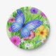 Schöner Blauer Schmetterling mit Blume Wasserfarbe Pappteller