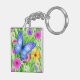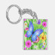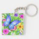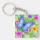 Schöner Blauer Schmetterling mit Blume Wasserfarbe Schlüsselanhänger