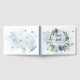 schöne blaue Farbtöne und weiße Blume mit einigen grünen Blätter botanisches Kranz Gästebuch. Die Einzelheiten des Glitzer werden simuliert