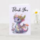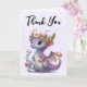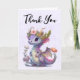 Vielen Dank Karte mit einer Illustration eines mythischen Drachen. Lila und blaue Waage. Eine geblümte Goldkrone mit Hörnern schmückt den Kopf. Magisch, lustig und freundlich.