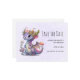 Save the Date Postkarte mit einer Illustration eines mythischen Drachen. Lila und blaue Waage. Eine geblümte Goldkrone mit Hörnern schmückt den Kopf. Magisch, lustig und freundlich.