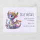 Schöner Drache mit eleganter Krone Save the Date Einladungspostkarte
