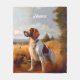 Ein brauner und weißer englischer Setter wird stehend in einem goldenen Feld abgebildet.