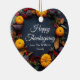 Mit dieser wunderschönen, herzförmigen Keramik zum Erntedankfest senden Sie Ihren Freunden und Ihrer Familie Fallsegmente. Die hübsche Kürbisfotografie schmückt dieses Urlaubserlebnis.