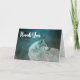 Vielen Dank Karte mit einem Foto von einem wunderschönen furry flauschig grauen Wolf. Im Hintergrund ist ein dunkler Wald mit Bäumen. Magisches mystisches Flair.