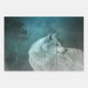 Papierblätter mit einem Foto eines wunderschönen, furiosen, flauschigen Wolfs. Im Hintergrund ist ein dunkler Wald mit Bäumen. Magisches mystisches Flair.