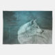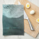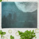 Küchentuch mit Foto eines wunderschönen, furry flauschig grauen Wolfs. Im Hintergrund ist ein dunkler Wald mit Bäumen. Magisches mystisches Flair.