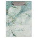 Schöner grüner Marmor und Glitzer Mit Monogramm Klemmbrett