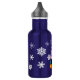 Ein niedlicher, lustiger Cartoon Pinguin mit Schneebällen und Schneeflocken Hintergrund. Personalisierte Wasserflasche.