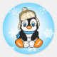 Schöner handgezogener Pinguin mit Schneebällen Runder Aufkleber