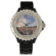 Schwarze Damen Email Strassuhr