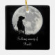 Dies ist ein Denkmal für die Erinnerung an den geliebten Hund. Ändern Sie den Namen. Ein wunderschön silhouettierter Hund mit einem Mond. Eine Gedenkstätte für süße Erinnerungen.