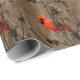 Phantastischer Rotvogel in den Zweigen eines toten oder fallenden Baumes mit braunen Blätter. Der Hintergrund macht das kräftige Rot der Vogelfedern auffällig und Pop.