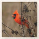 Phantastischer Rotvogel in den Zweigen eines toten oder fallenden Baumes mit braunen Blätter. Der Hintergrund macht das kräftige Rot der Vogelfedern auffällig und Pop.