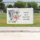 Geburtstagsbanner mit einer schönen Abbildung mit einem grauen, schwarz-weißen Leopardenportrait. Dieses hübsche Tier ist von einer tropischen Blume umgeben. Elegant, exotisch und schön.