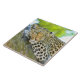Schöner Leopard mit den grünen Augen, die in einem Baum stillstehen.