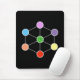Elegantes Mauspad mit einem wunderschönen Metatron-Würfel mit mehrfarbigen Punkten und einem Stern von David und der Nummer 7 in der Mitte. Der Würfel dieses schönen Metatron ist auf schwarzem Hintergrund.