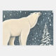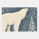 Ein lustiges künstlerisches Design mit einem zauberhaften, majestätischen Polar Bären, der in den arktischen Nachthimmel hinaufblickt, während große, flauschige weiße Schneeflocken um ihn herabfallen.