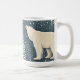 Ein lustiges künstlerisches Design mit einem zauberhaften, majestätischen Polar Bären, der in den arktischen Nachthimmel hinaufblickt, während große, flauschige weiße Schneeflocken um ihn herabfallen.