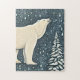 Ein lustiges künstlerisches Design mit einem zauberhaften, majestätischen Polar Bären, der in den arktischen Nachthimmel hinaufblickt, während große, flauschige weiße Schneeflocken um ihn herabfallen.