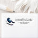 Adressetiketten mit einer schönen Aquarellfarbe, die von einer Krähe gezeichnet wird. Dunkelblau und lebendige lila Farben unterstreichen die Schönheit dieses Vogels.