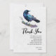 Flat Dankeschön Karte mit einem schönen Aquarell zeichnend einer Krähe. Dunkelblau und lebendige lila Farben unterstreichen die Schönheit dieses Vogels.