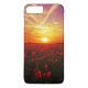 Schöner roter Mohnblumen-Blumen-Feldsonnenuntergang.