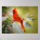Poster mit dem Foto eines schönen roten Kardinals sitzend in den Zweigen eines Baumes.