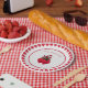 Schöne rubinische Papiertafel mit Herz und Blume auf hellsilberfarbenem Hintergrund. Der Text "Ruby Anniversary" kann personalisiert sein.