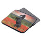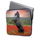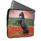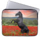 Schöner schwarzer Hengst auf einem Mohnfeld Laptopschutzhülle