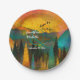 Schöner Sonnenuntergang, Bäume und Vögel Hochzeit Pappteller