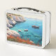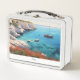 Schöne weiße Lunchbox mit Strand auf den griechischen Inseln reisen Urlaub in Europa.