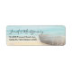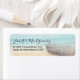 Rücksendeadressen-Aufkleber mit einem schönen rustikalen Bild. Feine Farben von hellblau, sandig braun und sanft weiß. Eine Strandlandschaft mit einem Boot am Ufer mit einem Fischernetz, das an der Seite hängt. Ein eleganter, schäbiger Look.