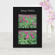 Eine wunderschöne Karte mit Aufnahmen von wunderschönen lila-Fushia-Tulpen inmitten ihres hübschen grünen Blattwerks.