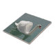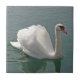 Hübscher weißer Schwan, der in grauem Wasser schwimmt.
