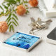 Schöne Schlüsselkette mit weißen Schneeflocken, die aus einem magisch blauen Himmel fallen. Perfektes Weihnachtsgeschenk für Ihre Lieben.