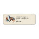 Adressetiketten mit einer schönen Aquarellfarbe gezeichnet. Mit einem Paar Pferde, braun und weiß. Kopf und Hals sichtbar mit tropfender Farbe entlang der Nackenbasis. Südwestvibe.