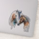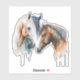 Kontakt mit dem Aufkleber mit einer schönen Aquarellfarbe gezeichnet. Mit einem Paar Pferde, braun und weiß. Kopf und Hals sichtbar mit tropfender Farbe entlang der Nackenbasis. Südwestvibe.