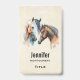 Benennen Sie Abzeichen mit einer schönen Aquarell zeichnend. Mit einem Paar Pferde, braun und weiß. Kopf und Hals sichtbar mit tropfender Farbe entlang der Nackenbasis. Südwestvibe.