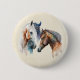 Button mit einer schönen Aquarellfarbe gezeichnet. Mit einem Paar Pferde, braun und weiß. Kopf und Hals sichtbar mit tropfender Farbe entlang der Nackenbasis. Südwestvibe.